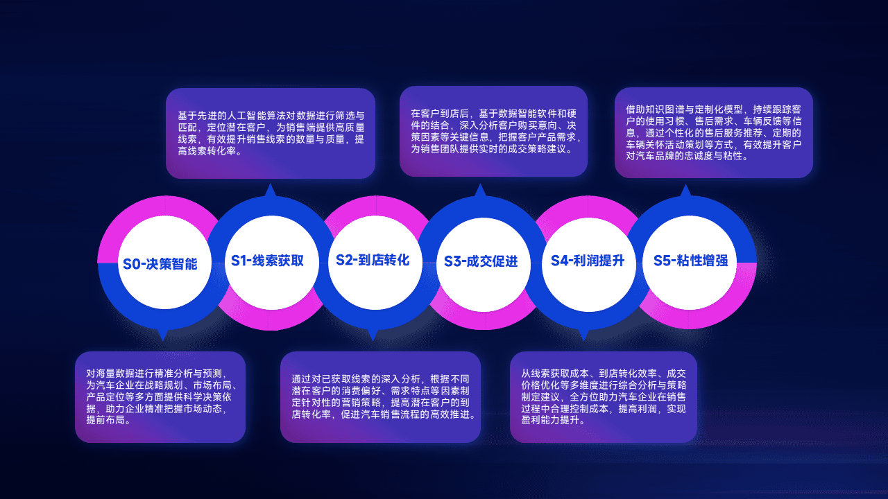 通过拓宽潜在客户来源、、、、优化线索分配并提高到店转化率,,,以增强销售效率。。同时,,利用线索数据不断优化分析模型,,有效提升转化率,,,扩大营销影响力。。。。